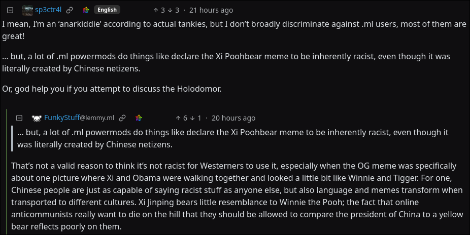 Carl N. Yon@lemmy.world to MeanwhileOnGrad@sh.itjust.worksEnglish · 11 days agoXi Jinping is a Race, Criticism of Xi is Racismquokk.auimagemessage-square11fedilinkarrow-up147arrow-down12