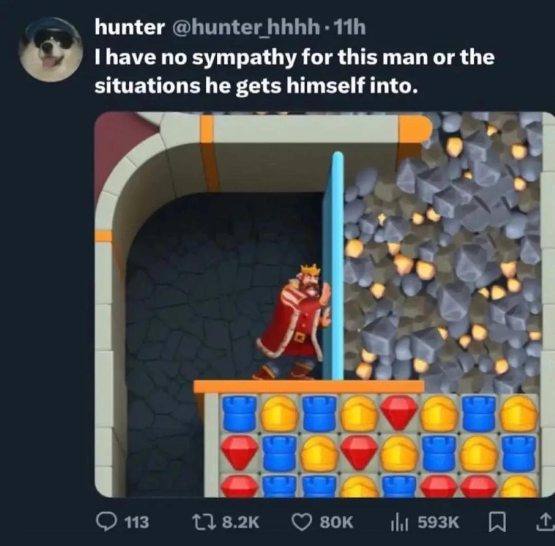 TotallynotJessica@lemmy.blahaj.zoneM to 196@lemmy.blahaj.zoneEnglish · 6 days agoHe's royalty anyways; his suffering rules!lemmy.blahaj.zoneimagemessage-square16fedilinkarrow-up1289arrow-down12
