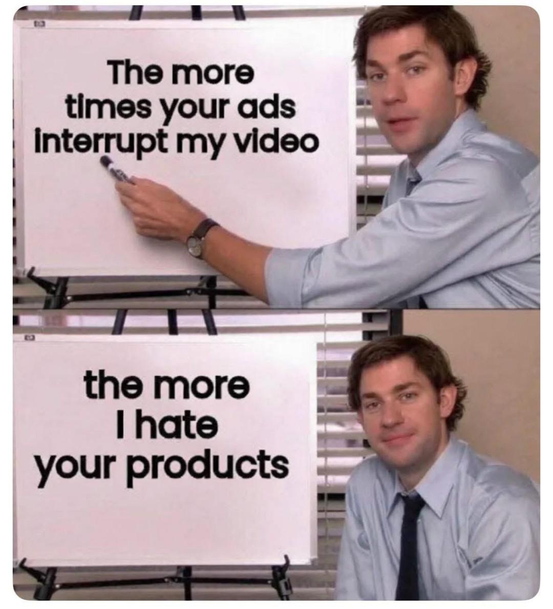 Right‽ I’m only even watching a video to learn something from it, that I, you know, went looking for. I have never been sold anything by a fucking ad. I will seek out your product if I have a need for it. You can not sell me a solution to a question that I have not asked.