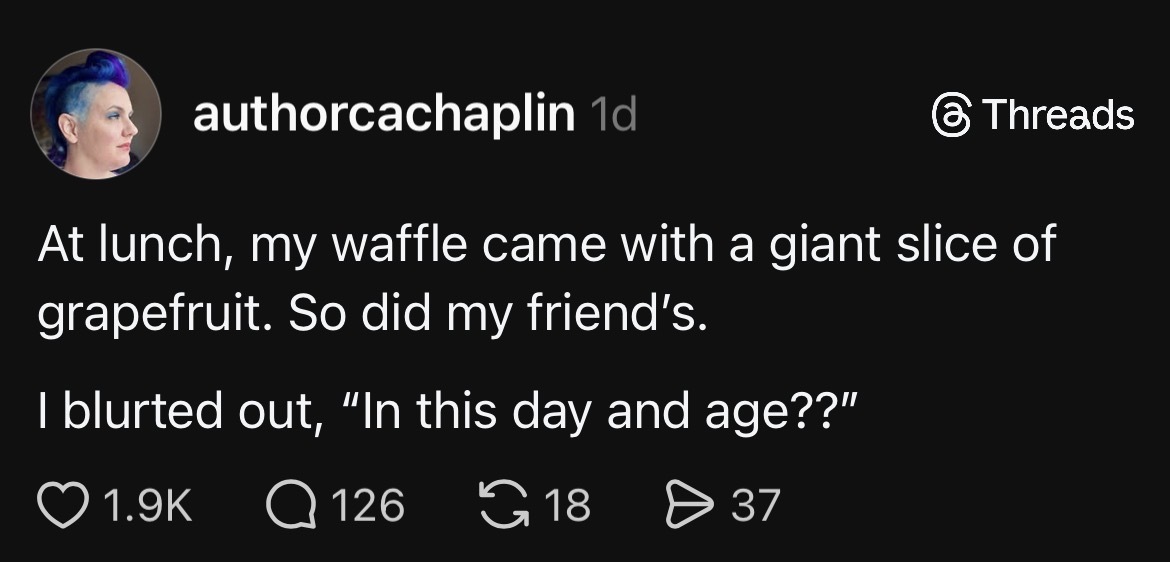 I can’t decide if this is a grapefruit hating joke or an “in this economy?” joke