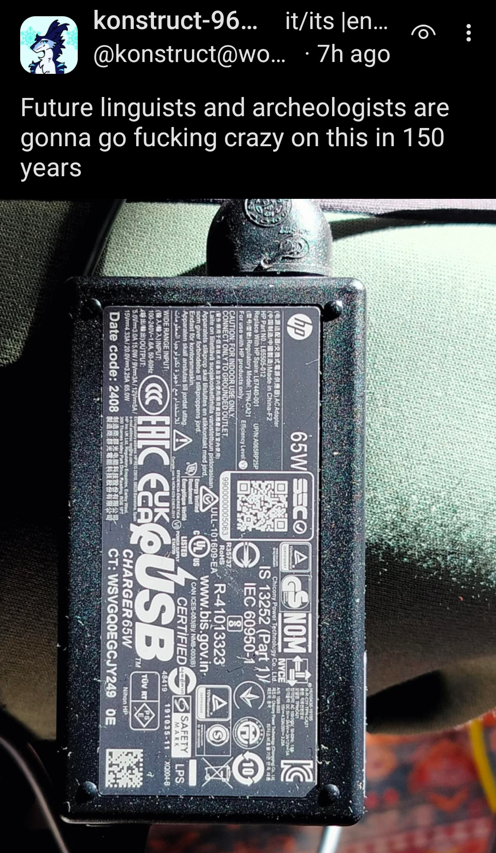 Anyway, why do they still ship these bricks? I’ve got a 65W GaN that works just as well, and is the size of a phone adapter. Even has extra type C and type A ports, though the output to extra ones depends on output to main.