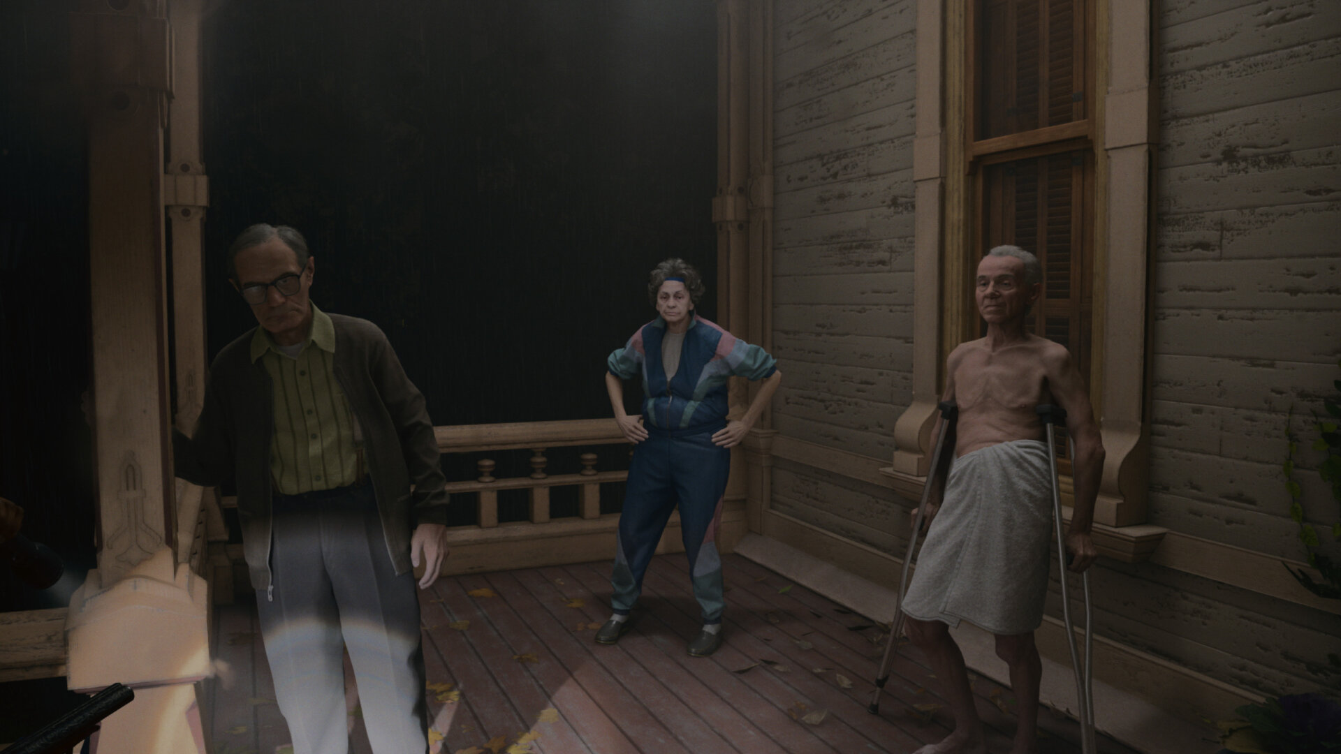Today’s game is Alan Wake II. Did you know these guys were on the front porch? Because I didn’t. 4 playthroughs in and I had no idea these guys were here until I went back in the house and saw one of them walking out front. I thought I was seeing things at first or it was some sort of Easter egg, but I found them out here and they were just chilling (or in the guy in the towel’s case, he was literally chilling)