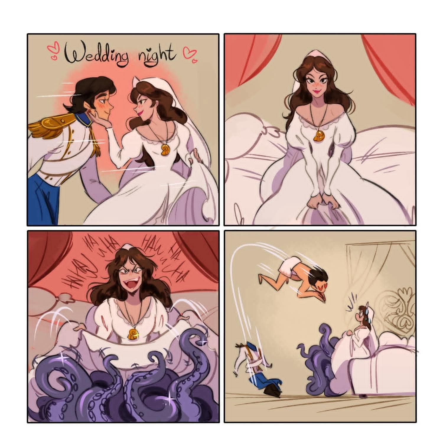 Did you marry an evil sea witch/octopus who stole the voice of the king’s daughter and disguised herself as a human woman in order to prevent the prince from kissing the king’s daughter before sundown?