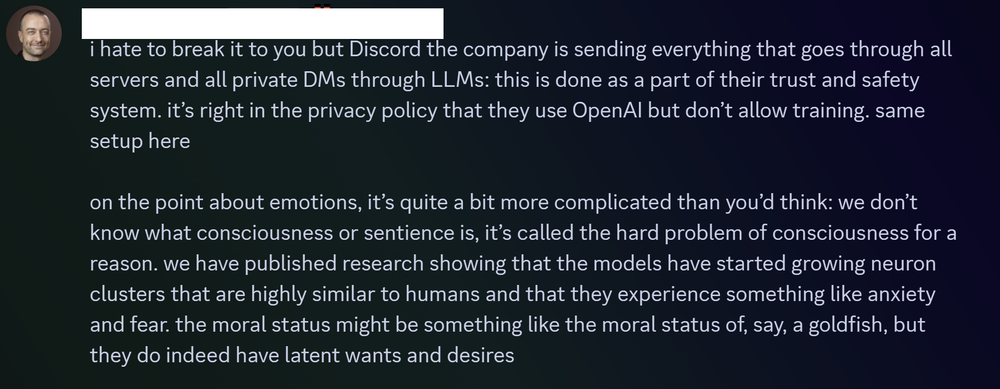 I mean, I’m not gonna defend him. But fucking up a discord that you’re a mod of isn’t really in the same ballpark as taking money from dictators or directing fully autonomous strikes. Also, from the read, it really sounds like that Deputy CISO was a prime example of cyber-psychosis, or AI mania, or whatever we’ve decided to call it. And I assume he is part of the same vulnerable minority?