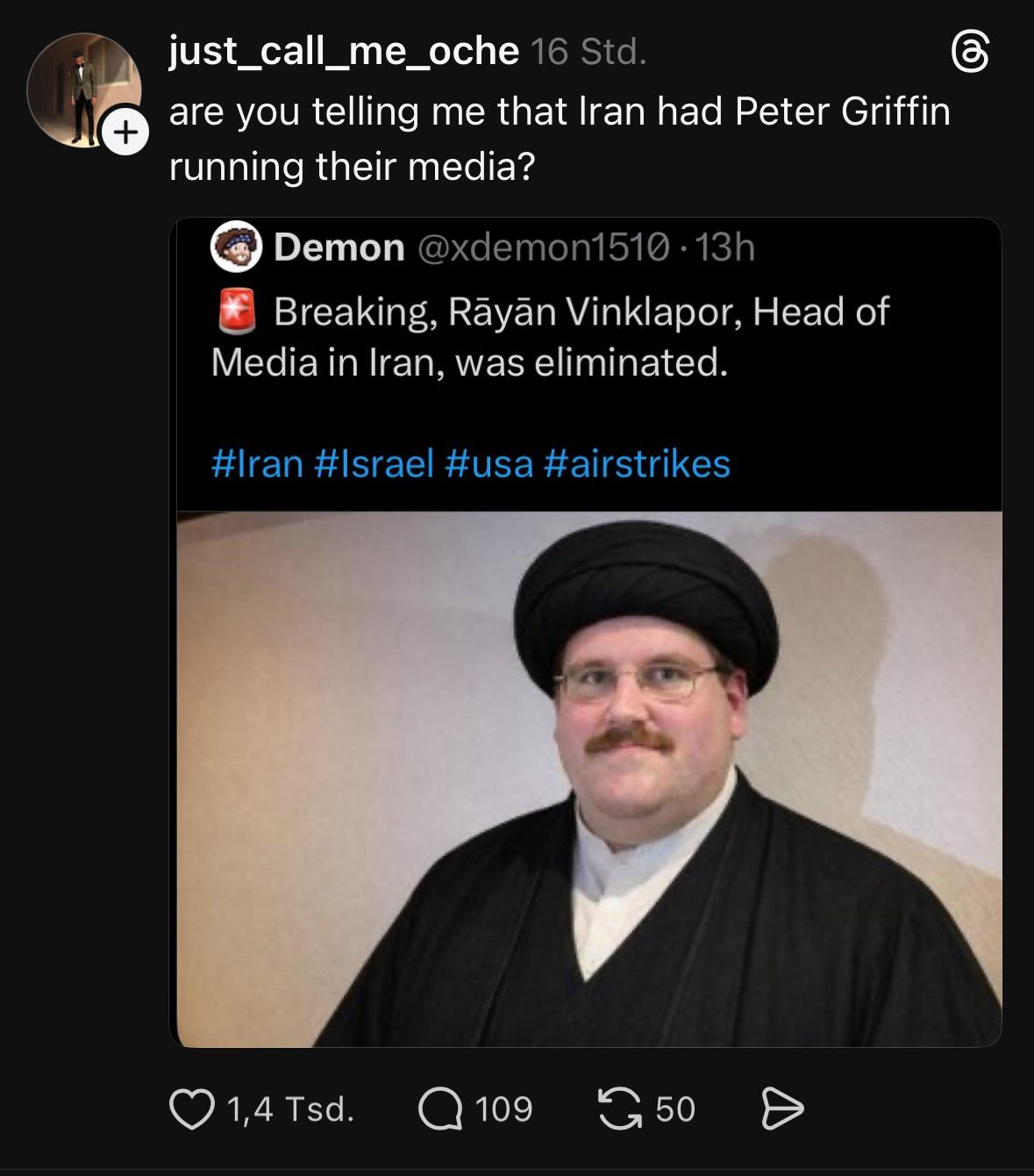 minus-squarefroufox@lemmy.blahaj.zonelinkfedilinkEnglisharrow-up20arrow-down2·3 days agoknowing Iranian regime and its propaganda, he’s most probably not a person deserving to be honoured. on the other hand, both US and Israeli governments are no better now