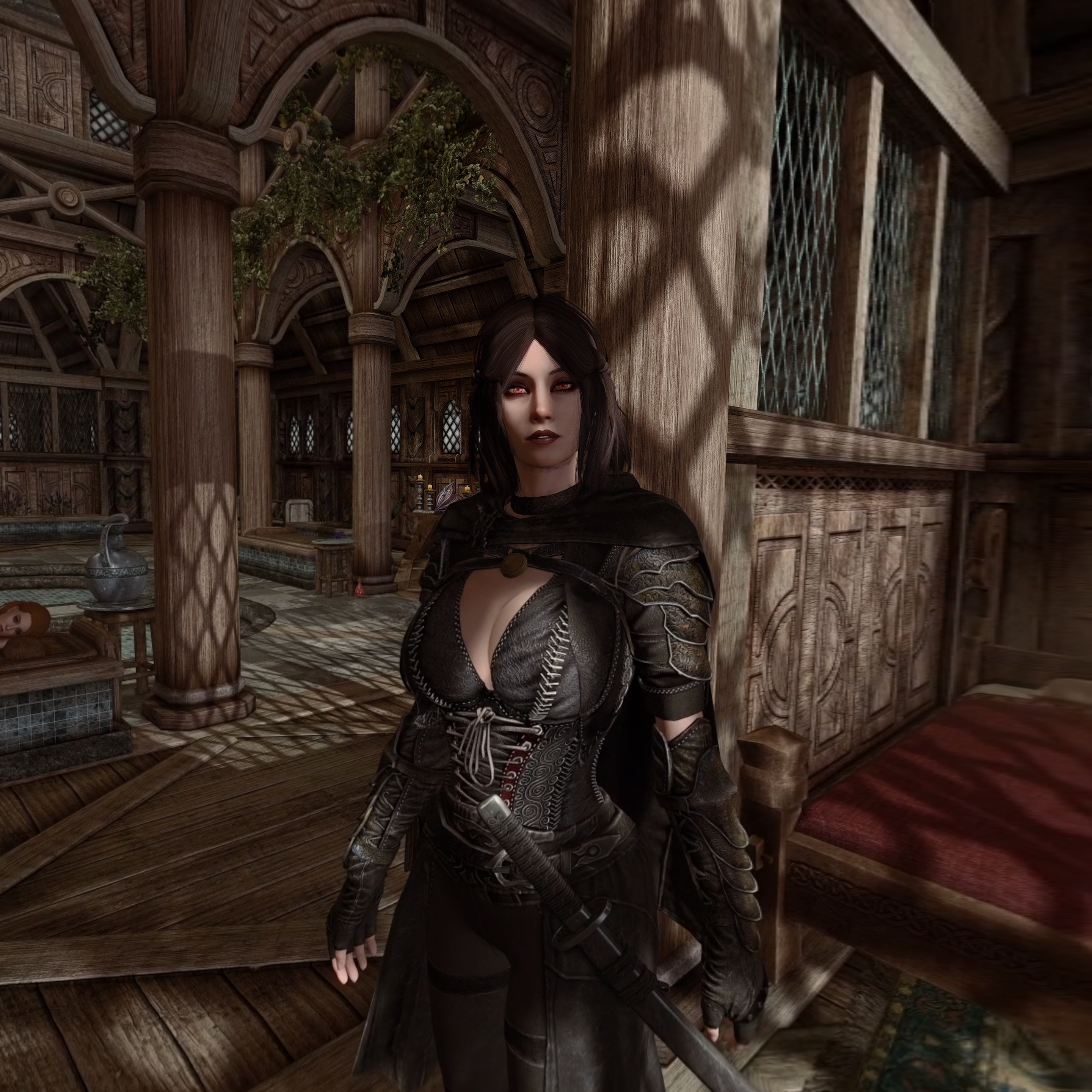 Screenshot is taken directly from the headset. The game is streamed to the headset wirelessly via Virtual Desktop app with the new foveated streaming feature (you can see the cutoff on the periphery where stuff starts to be more blurry / compressed). In the headset scenes like this (Low lighting with soft shadows) looks extremely atmospheric and really incredible because of the micro oled display and thanks to the new foveated streaming / encoding i finally can safely say compression artefact in wireless PCVR is a thing of the past.