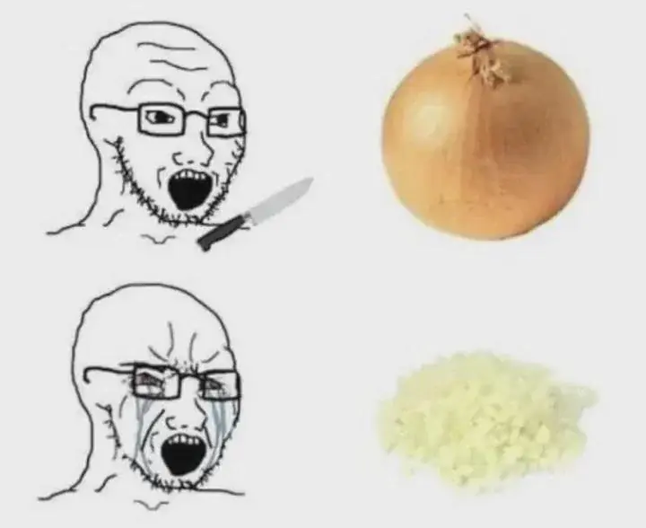 People who believe it helps make you not cry when cutting them. I’ve only found it works if they are like ICE cold tho. And at that point, I’d rather feel the tears than try to cut a frozen onion.