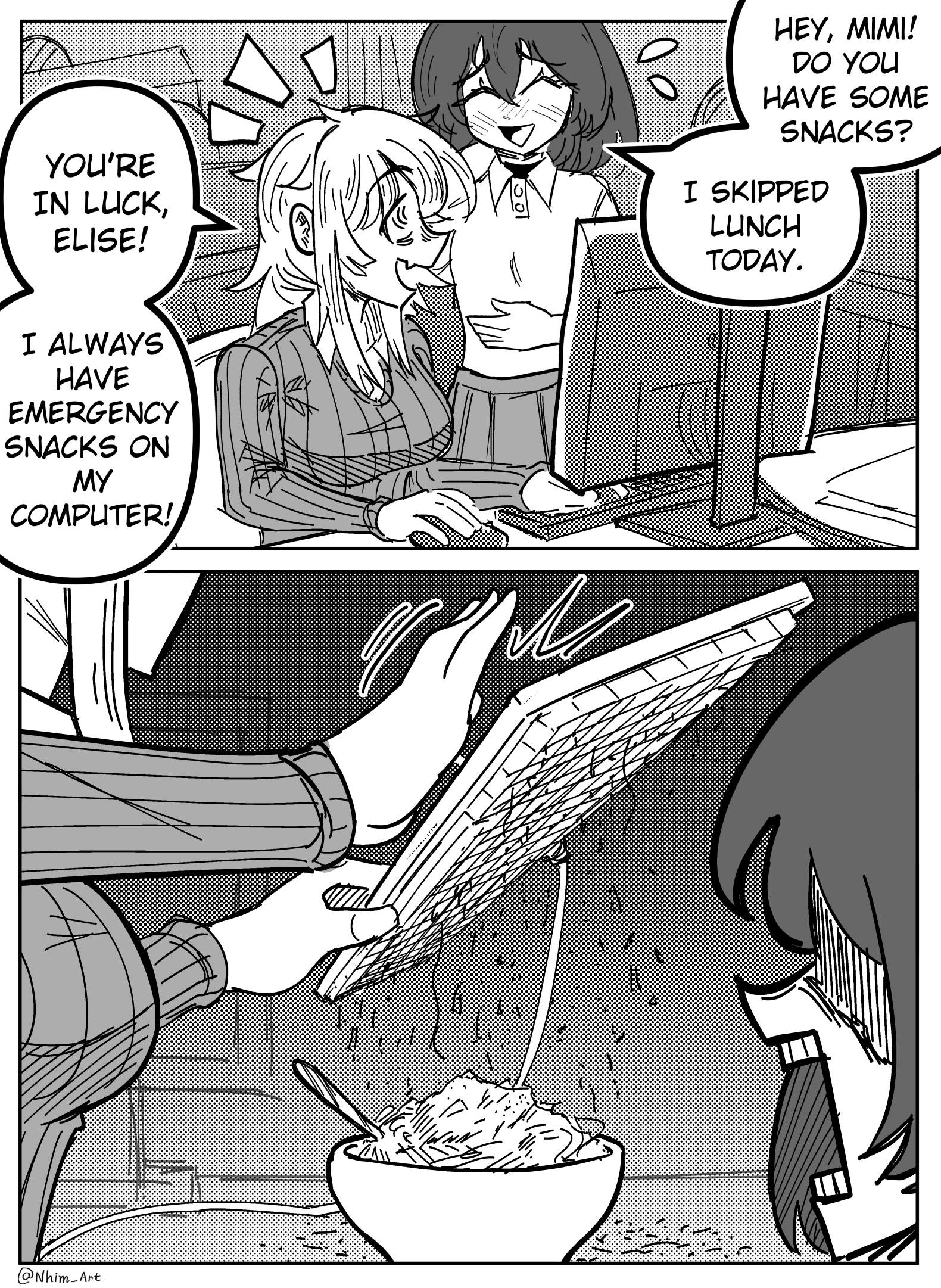 Yeah, I agree, though my problems usually come from the comics just not being funny and/or not making sense. Like this one, the bowl of food undercuts the whole joke. Is it her food that she’s ruining to give the other girl? If so, why would she give her own lunch away, regardless of the keyboard debris? If not, where did it come from? It would make more sense if she said, “yeah I always keep some snacks nearby, hold out your hands,” and then the last panel was her dumping the stuff into the other girl’s open palms. It’s nitpicky, but they’re all like that with the punchline either in the wrong place, forced into it without proper setup, or completely non-existent. This applies to the majority of comics I see posted here unfortunately.