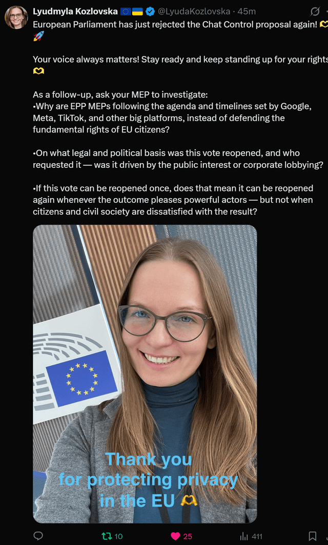 They’ll just change a few things and try again. I feel like we’ve been hearing about chat control on and off for about 5 years now and I can’t imagine it’ll go away soon.