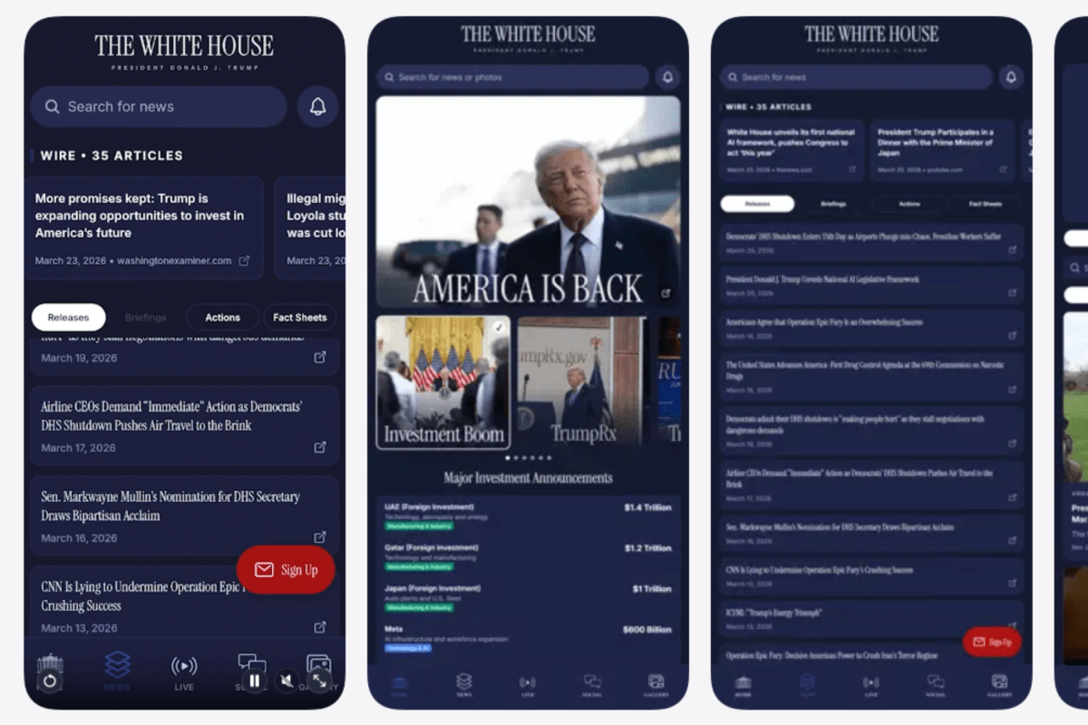 arrow-up1102arrow-down1external-linkWhite House reveals new app after cryptic posts: Full list of featureswww.newsweek.comreturn2ozma@lemmy.world to Technology@lemmy.worldEnglish · 22 hours agomessage-square43fedilink