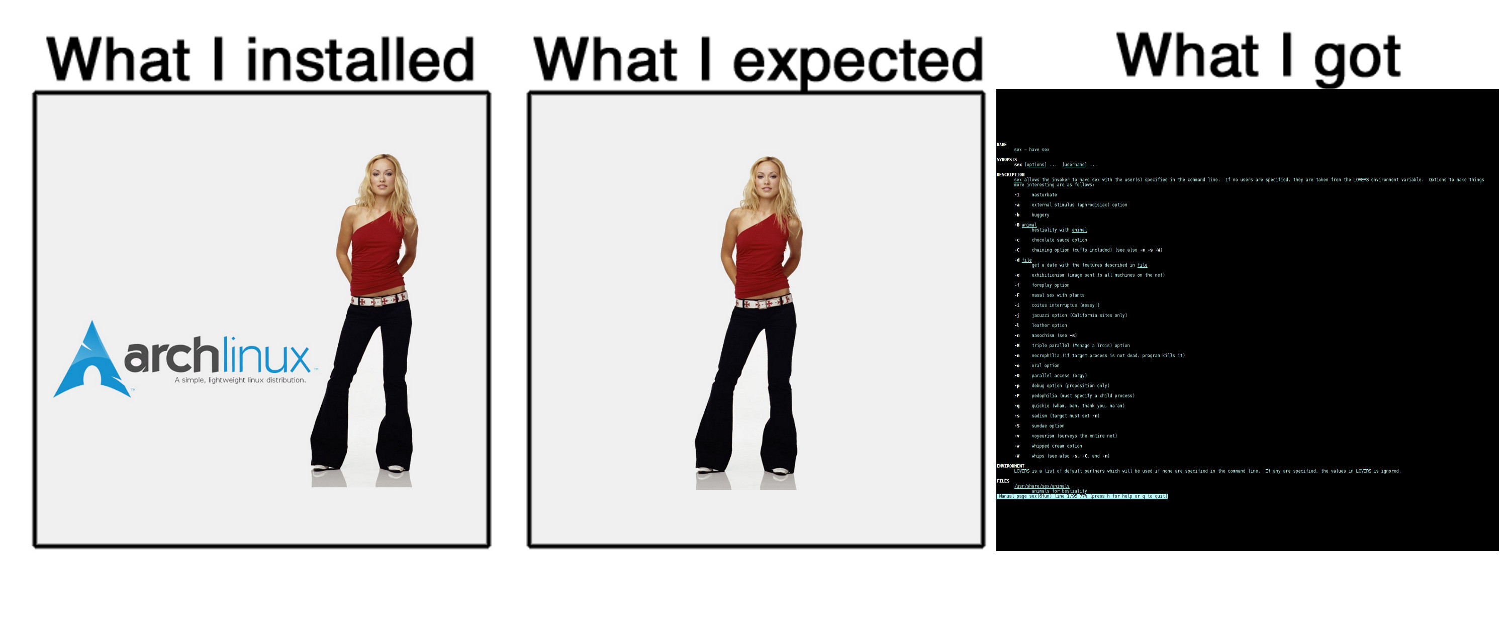 uuuh… you expected woman from archlinuxwoman and got rtfm?