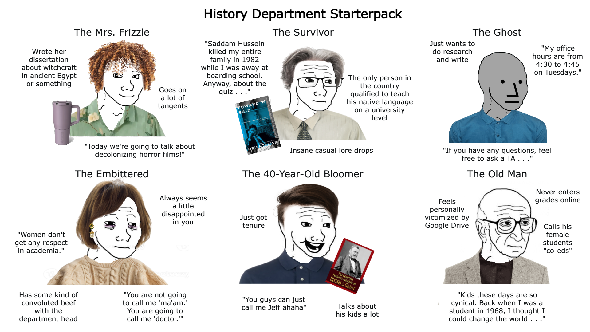 Well, if he just got his tenure at 40, that means he presumably did something else in his life before tackling this path. Him saying the students can just call him Jeff is also maybe linked to him having still been a student until recently. I assume, it’s a case of this being funny, if you actually study history and know a professor like that. 🫠
