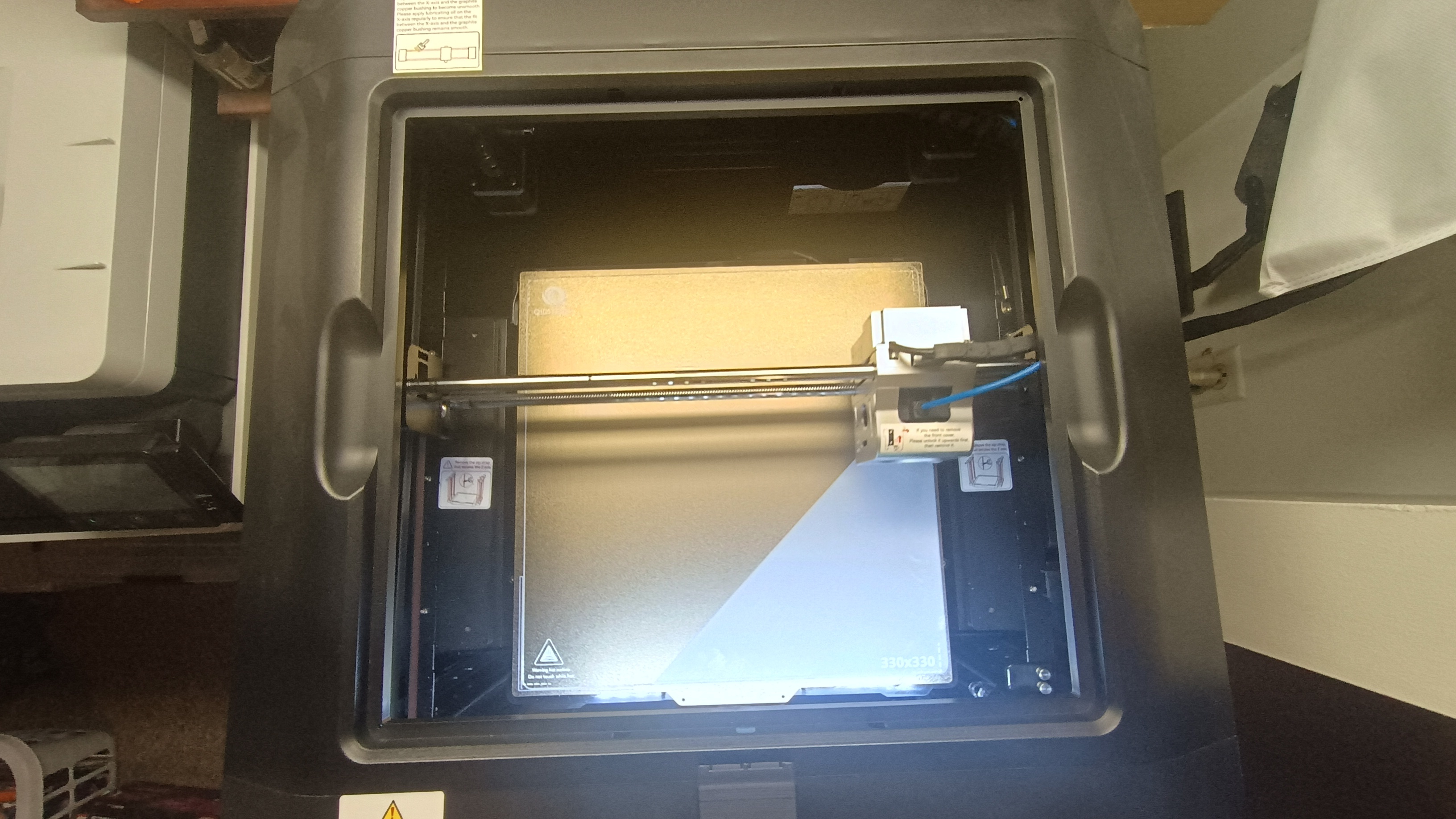 This part is actually slightly outside the “safe print zone” dashed lines on my build plate. I put down like half a can of hairspray on it right before the nozzle descended. Wish me luck.