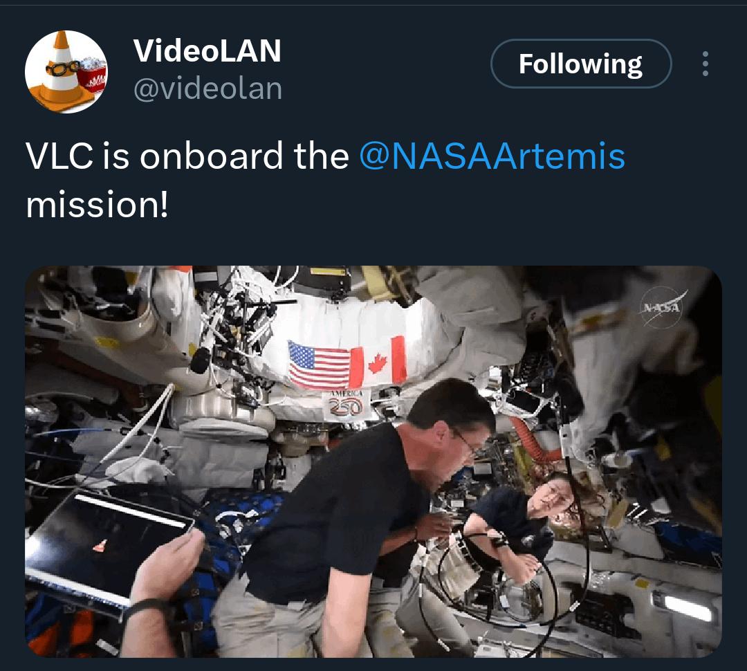 The joke is that VLC is closer to the moon than those traders promises that crashed.