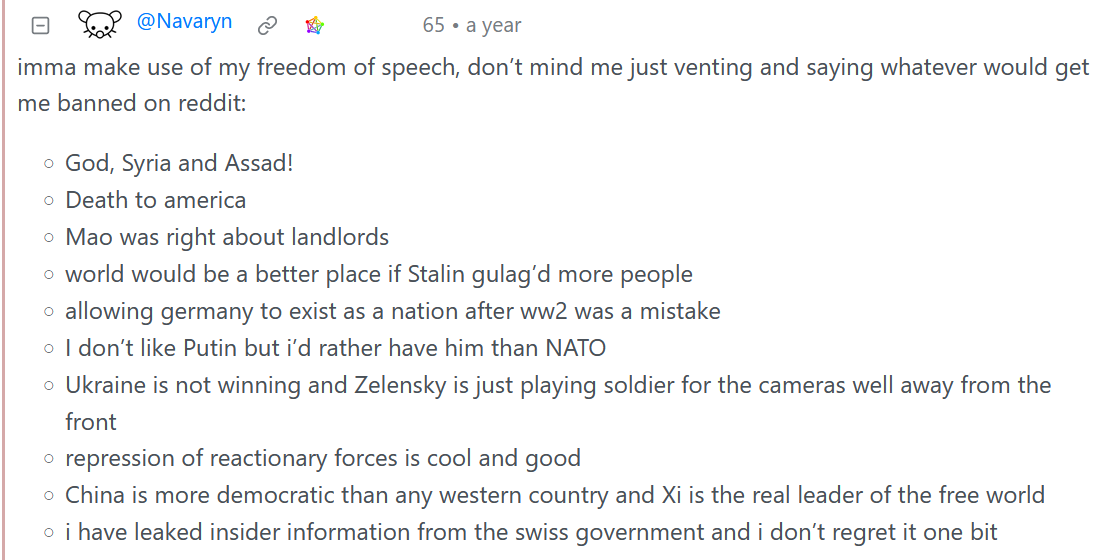 He seems to be a troll riding the anti tankie wave, probably actually from Lemmygrad to see what the libs will believe