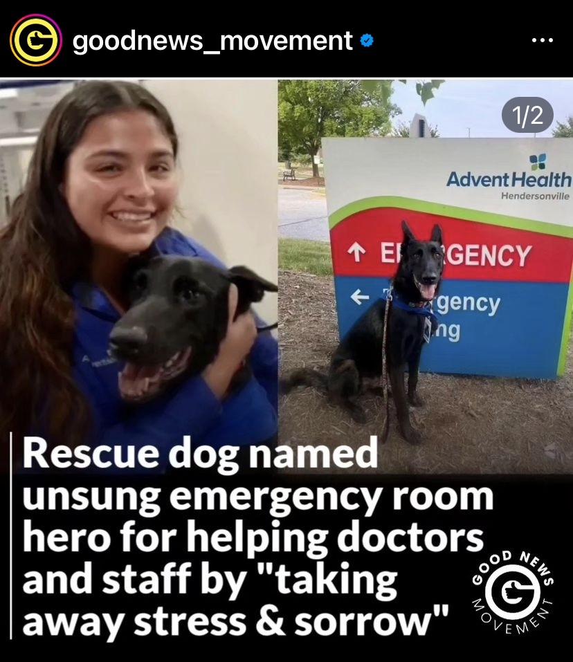 Rescue dog is hailed as unsung hero, for helping doctors and staff of emergency room, by taking away stress and sorrow