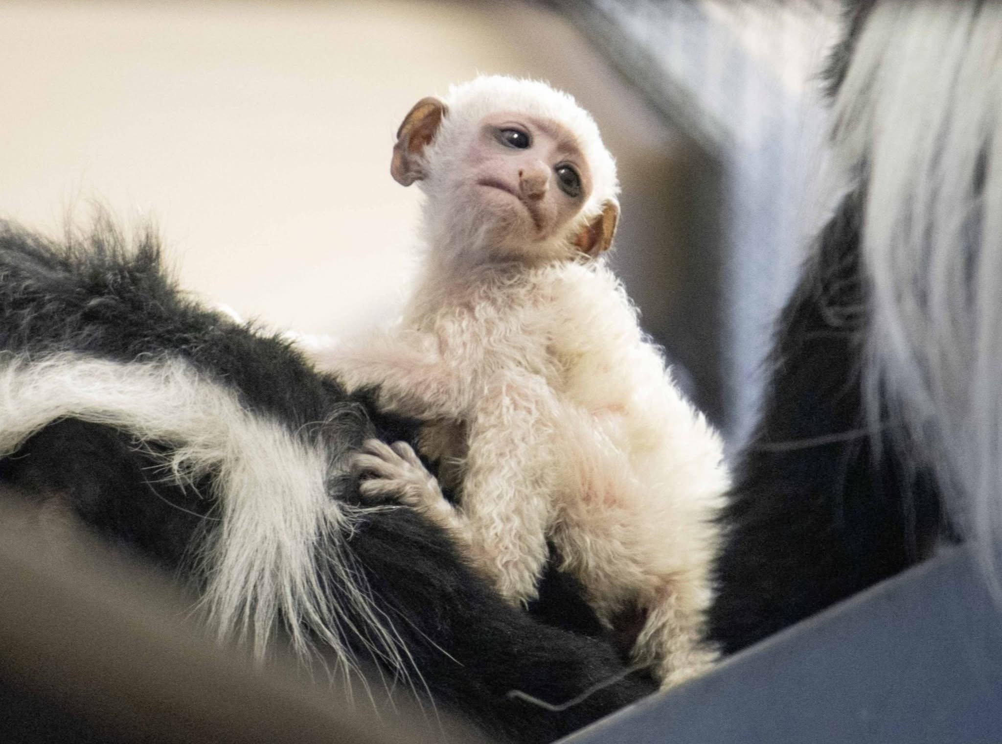 Colobus monkeys are born white and then transition into the black-and-white coloring as they get a bit older.