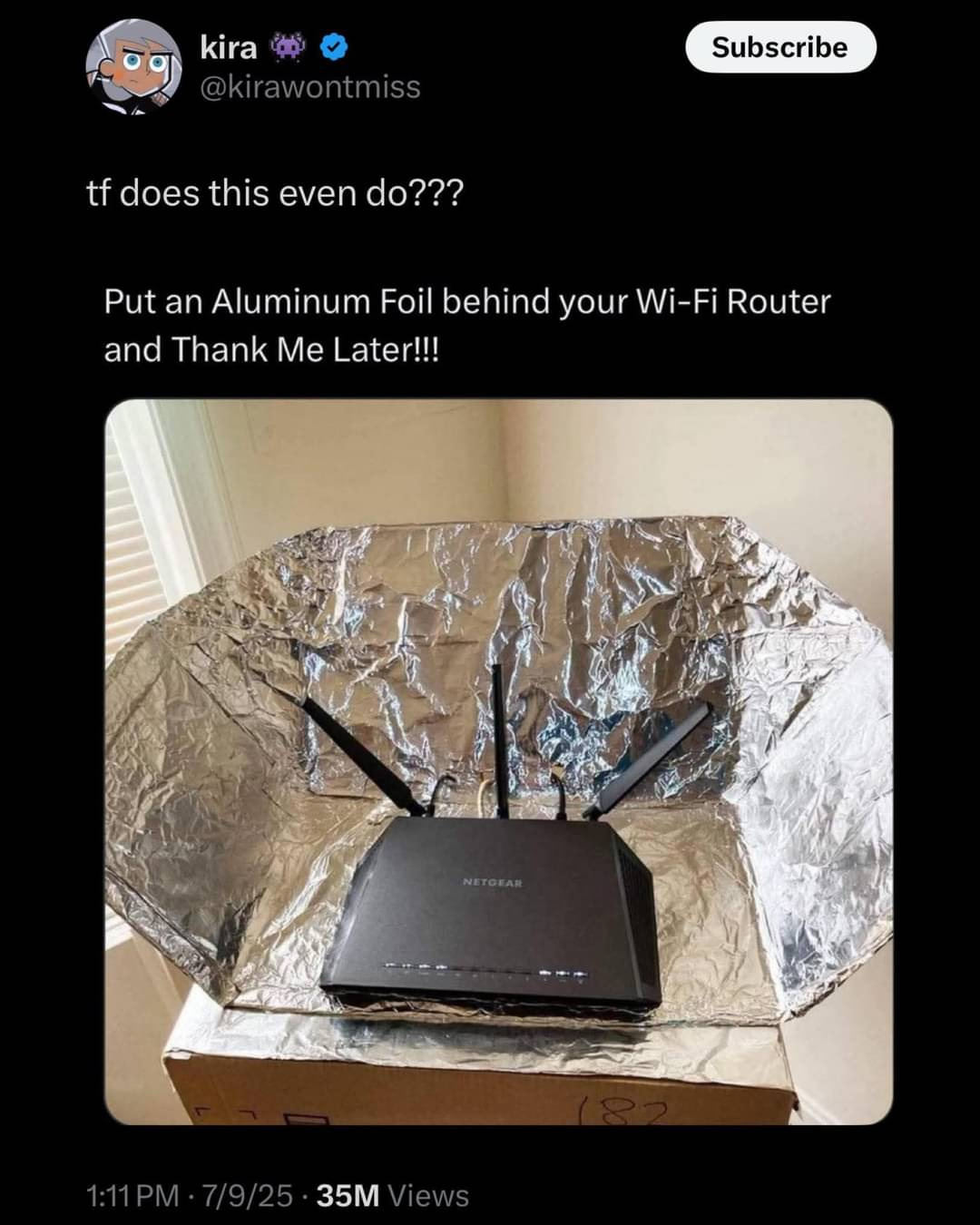 I remember like 15 or 20 years ago the popular thing was printable papercraft doohickeys that you’d cut out and glue together with aluminum foil on the backside that were like little satellite dishes that mounted on the antennas that were supposed to boost/aim your wifi signal. I gave them a try, but if they made a difference it wasn’t big enough to be noticeable.