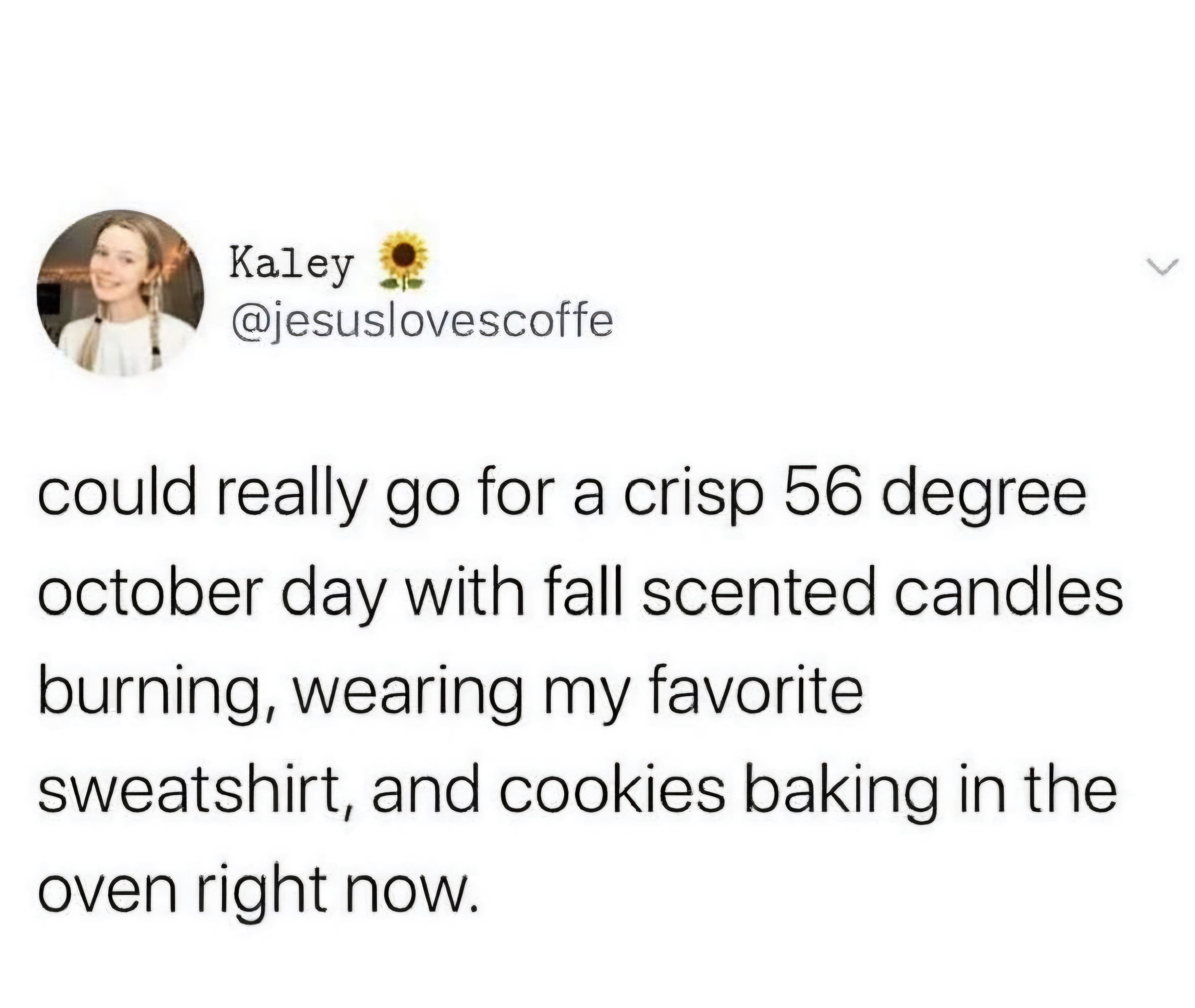 56 degrees with a sweater and standing in front of the oven would probably kill you, but hey Kaley whatever makes you feel alive.