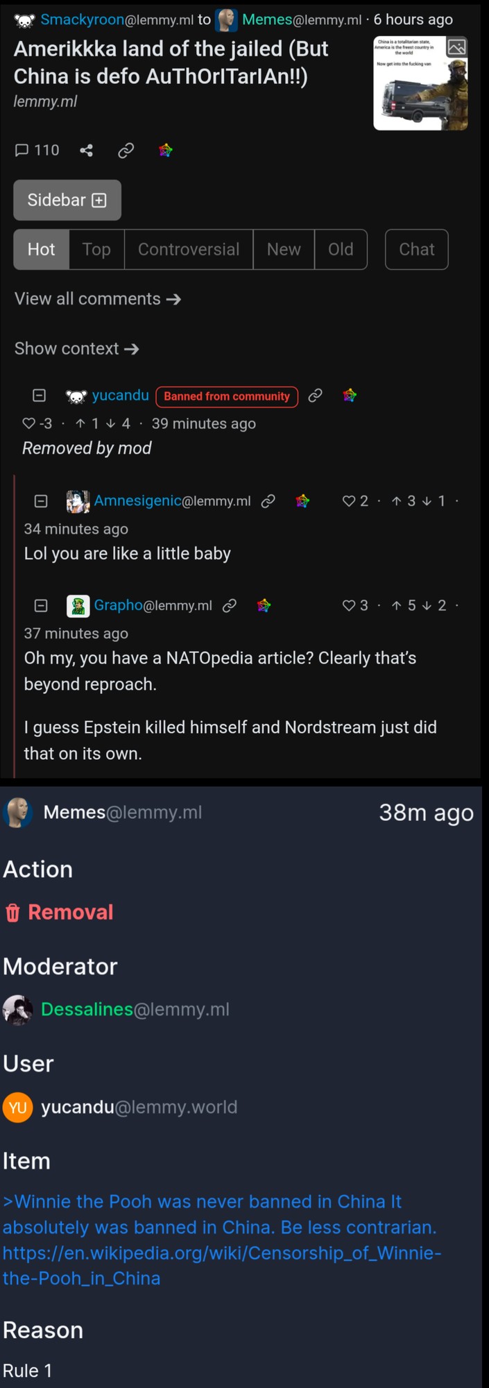In any case Dessalines being a power tripping ML censor as usual.