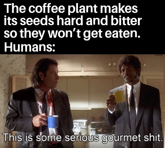 Yeah, that’s the funniest thing to me. There’s an actual fruit that we could eat. Instead, we take the seed, roast it, grind it and soak it in boiling water. Then we drink the water.
