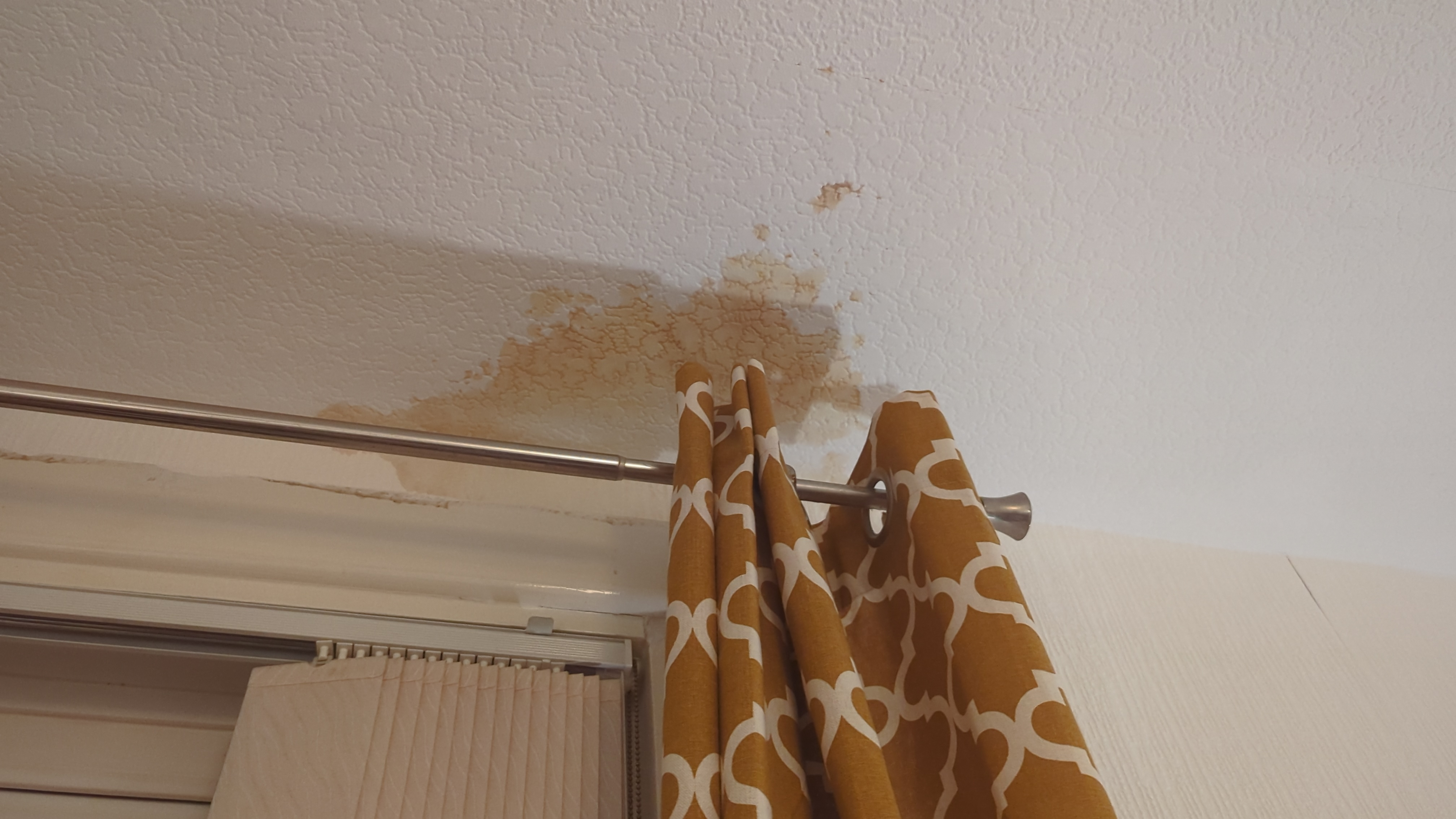 Just noticed this brown stain above my living room window. I don’t have a ladder at the moment so can’t reach it to touch it but the wallpaper near it is starting to lift so I think it might be damp. But it’s on the ground floor and there doesn’t appear to be anything else around it or in the room above it. My bathroom is on the floor above too but to the right. Could it be water travelling from the bathroom down or getting in from outside? It hasn’t rained locally since Saturday.