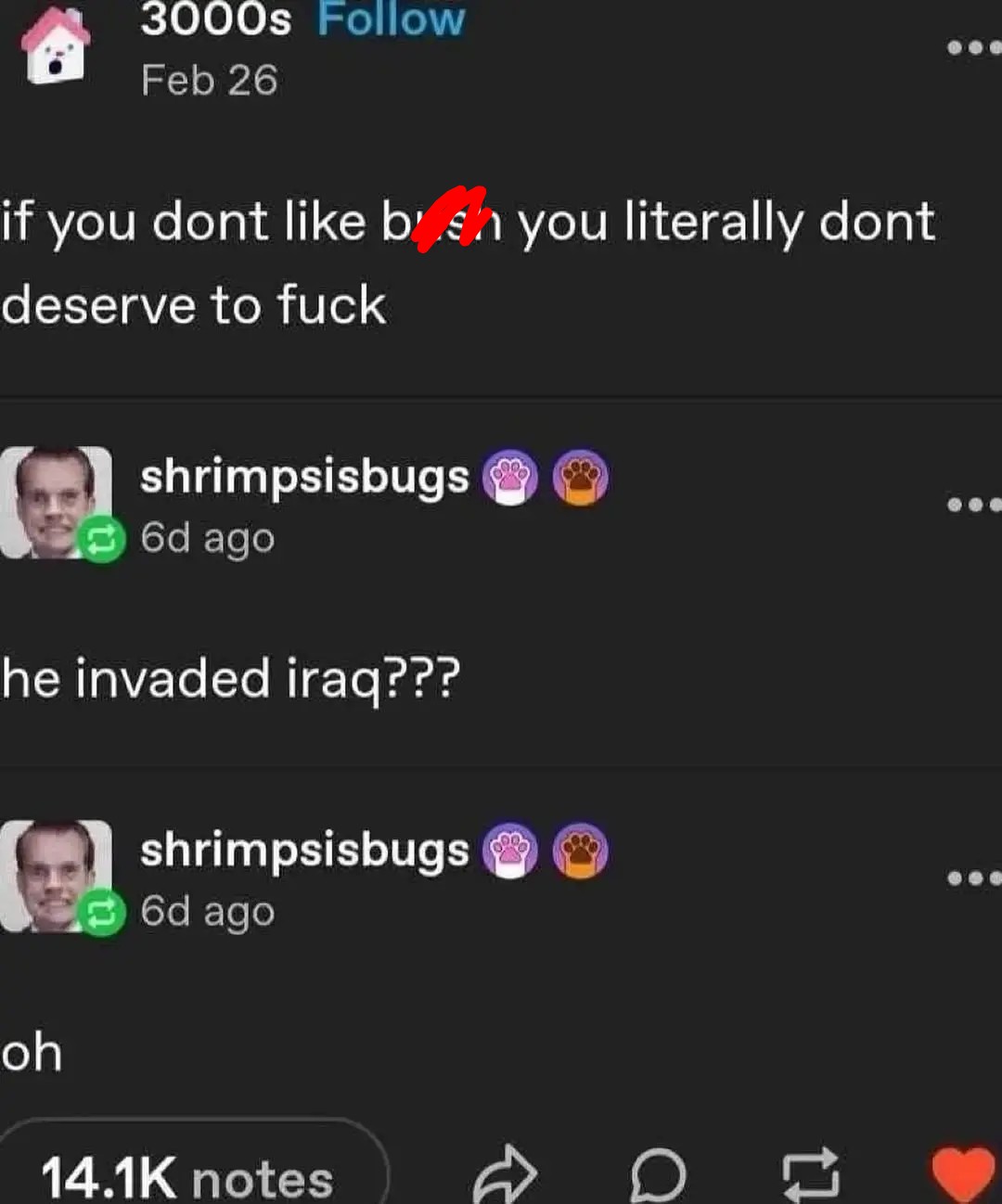 redirtSdeR@lemmy.world to 196@lemmy.blahaj.zoneEnglish · edit-21 month agobush rulelemmy.worldimagemessage-square19fedilinkarrow-up1229arrow-down177