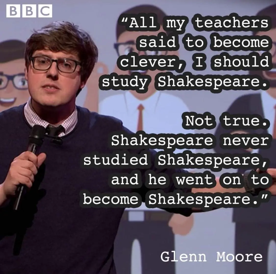 Stamets@lemmy.dbzer0.com to Funny@sh.itjust.works · 11 days ago[GlennMoore] Study Shakespearelemmy.dbzer0.comimagemessage-square3fedilinkarrow-up1272arrow-down13