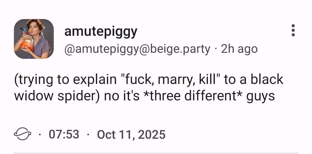 Can you imagine how badly it stinks to be a Lesbian black widow spider?