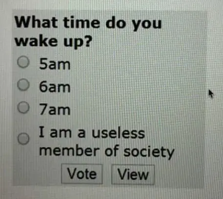 Joke’s on them. I get up at 5AM and I’m a worthless member of society.