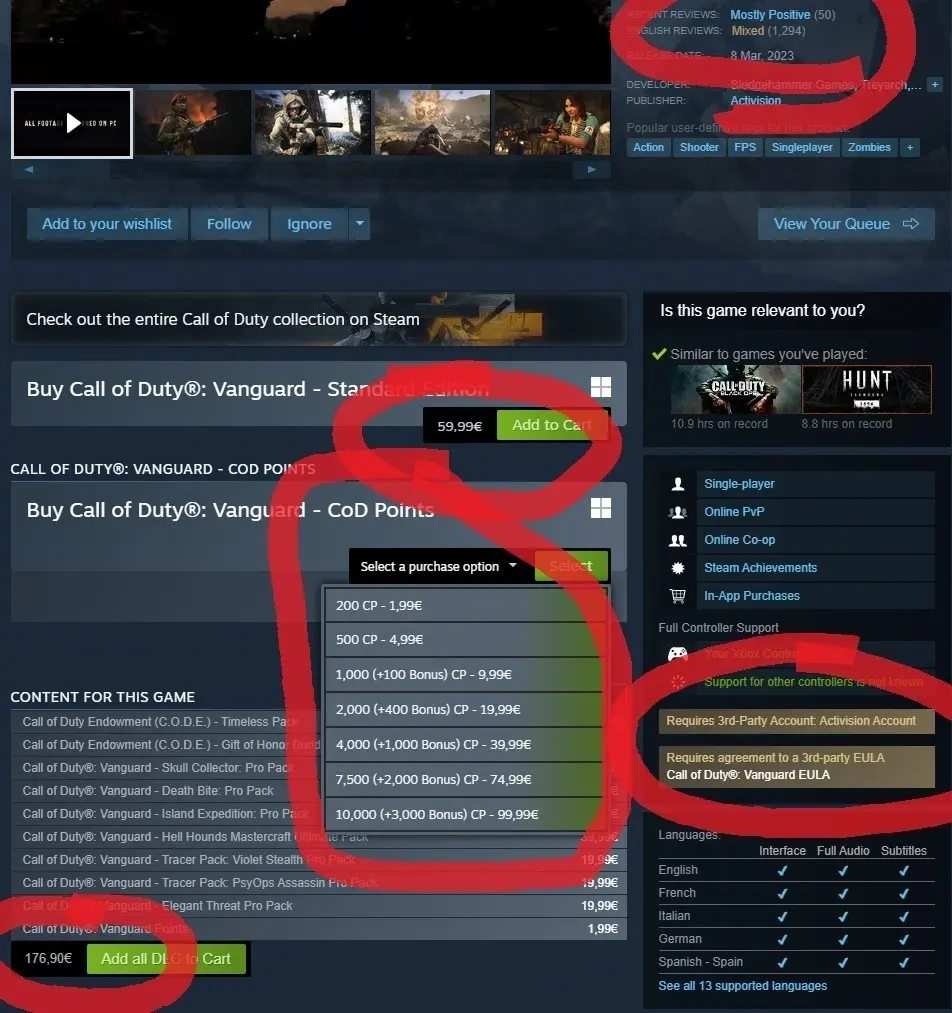 - 60 euros base game: expensive, especially when the game has mixed reviews