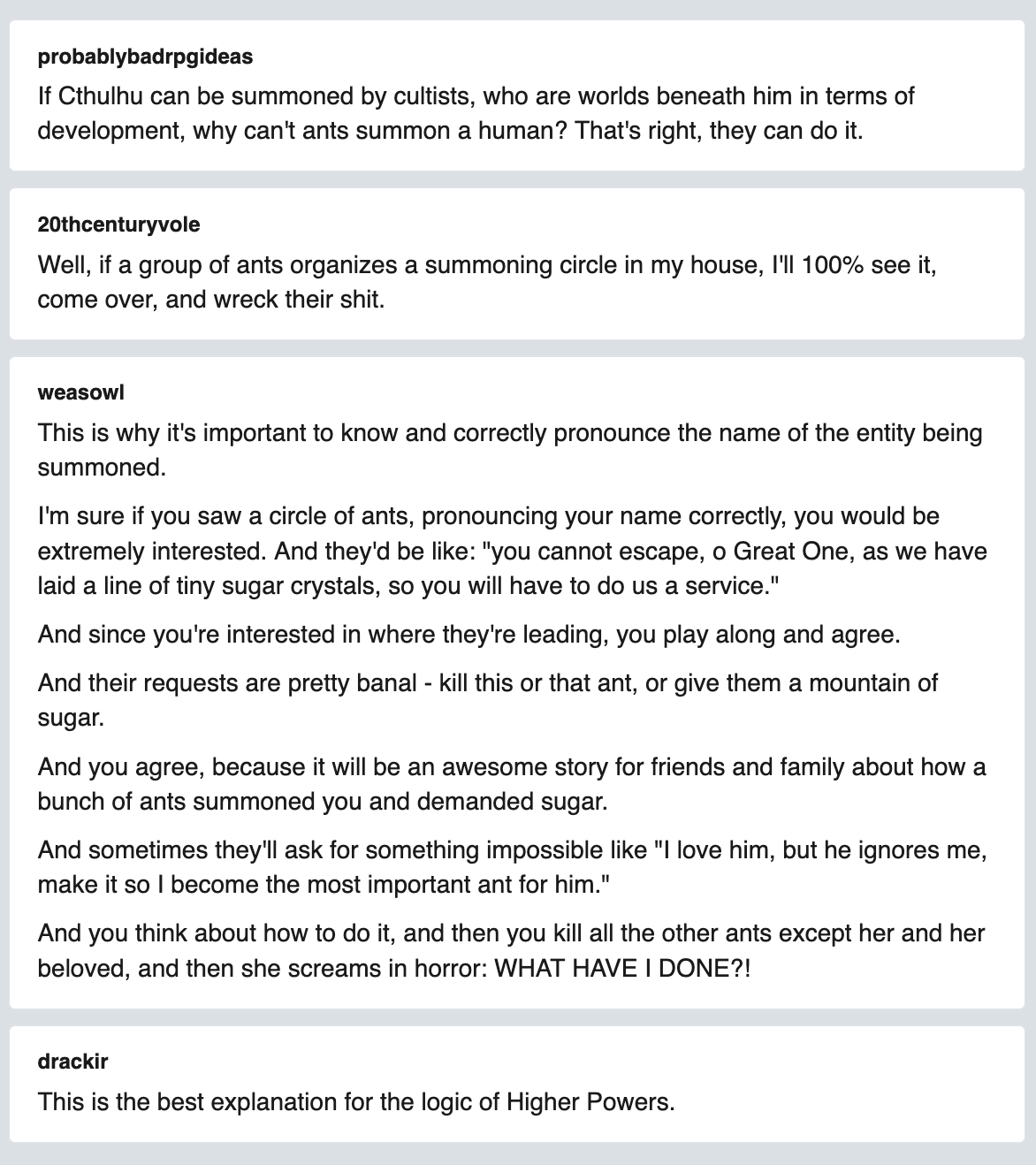 I did put higher and lesser beings in quotes for a reason. I am not assuming that humans are better than crows.