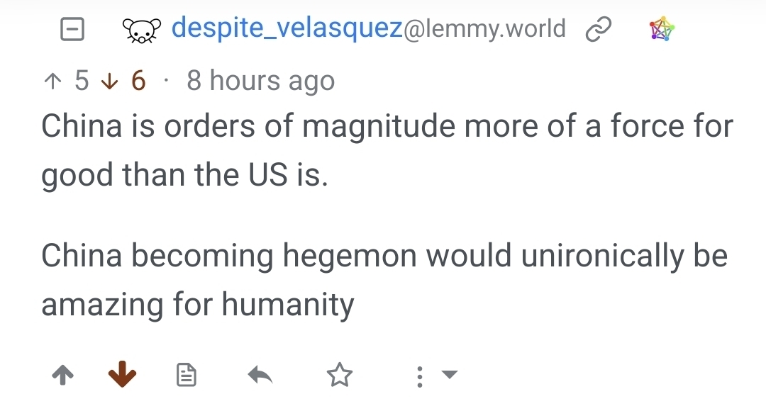 Edit: I mean, to clarify… I don’t like the idea of a global superpower existing regardless.