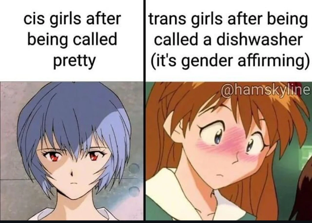 The joke is that you’d think the reactions would be switched because getting called pretty is generally the nice thing and there dishwasher comment is usually meant as a sexist jab. But there’s a phenomenon among trans people in general but in this case among trans women in particular where especially early on in transition they tend to get very happy at experiencing the garden variety sexism that’s usually reserved for their aligned gender because it means the other people are seeing them as that gender rather than their agab and treating them as such.