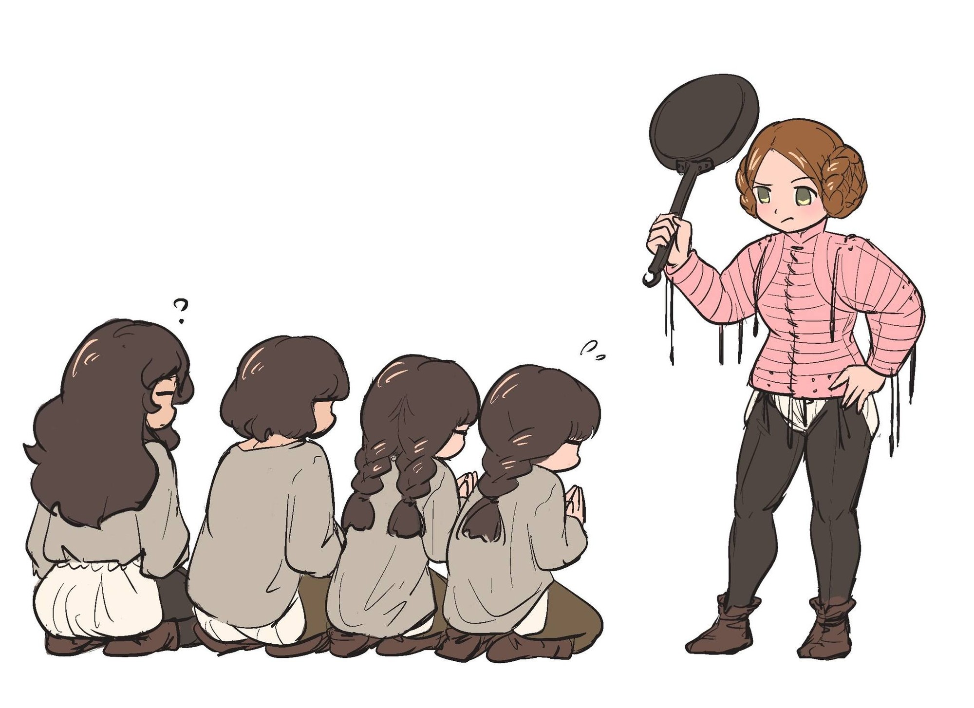 Ironlily is an artist who does animesque girls in medieval clothing and armor, often with cutesy, amusing, or memetic themes.