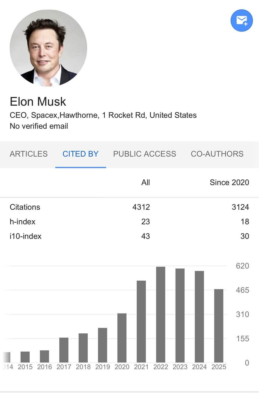 Well that is a nice illustration for the fact that listing an h index with no context doesn’t mean much.