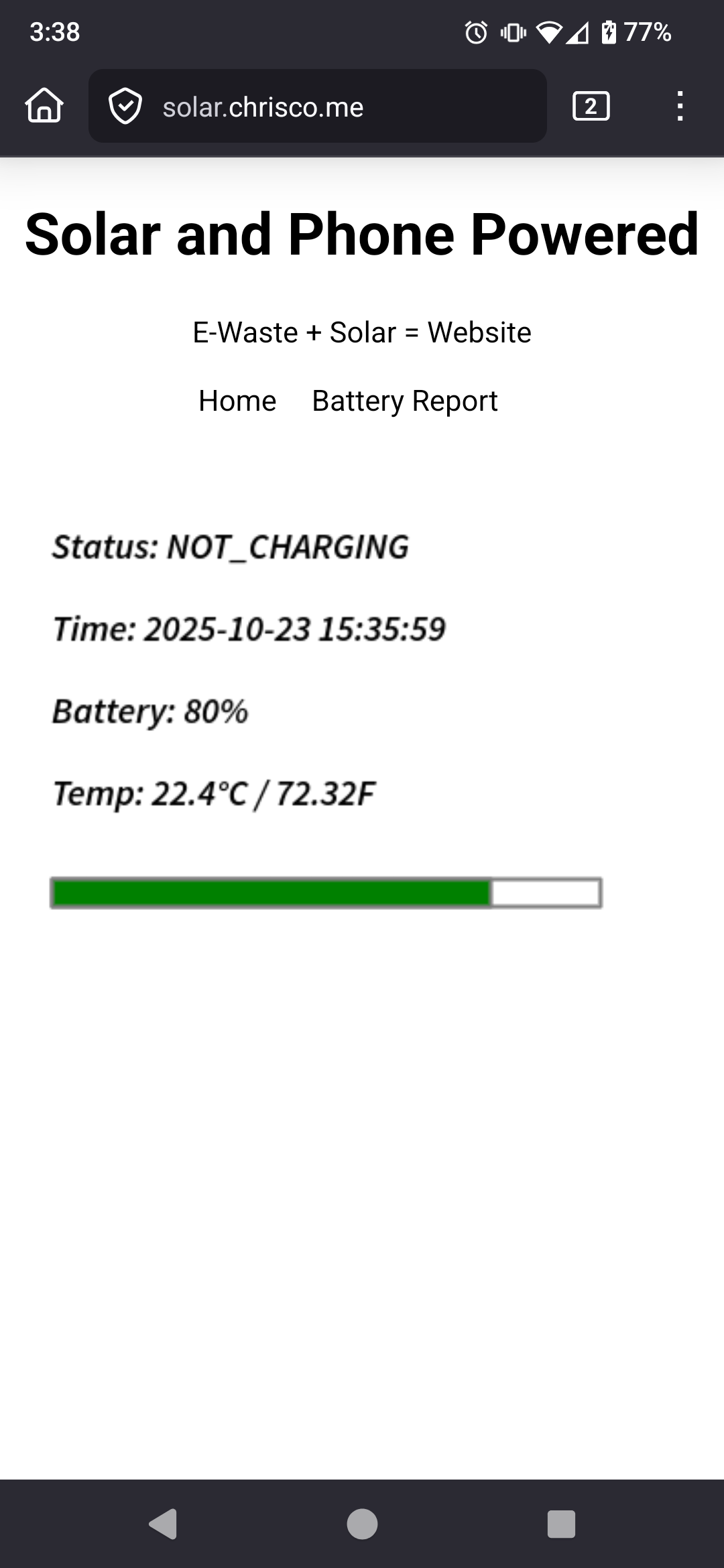 This is my solar powered setup. A somewhat old Pixel 6a that fell from a foot and a half (really!?), a 10w Solar setup that was around 20$ on amazon. And an old compost container I have too many of. Ill be giving it a proper 3d printed case when I get a chance (and a host of other changes) but for now this works! Its worth about 40$ in total (the phone is now worth about 21$ on the open market).