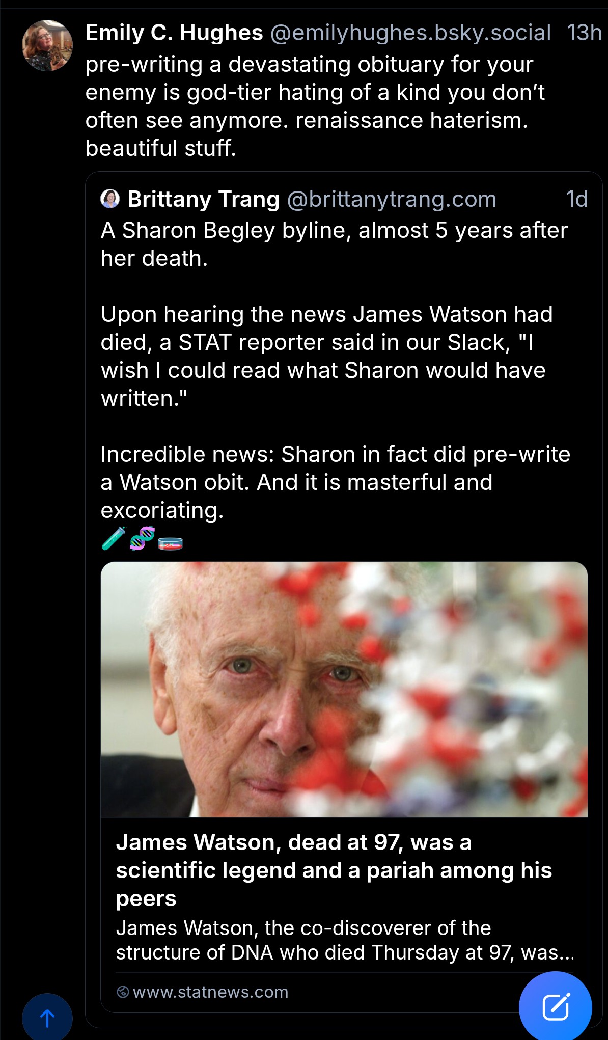 minus-squaretetrachromacy@lemmy.worldlinkfedilinkarrow-up24·2 months agoThis is the sort of spite that manifests greatness. A stellar clapback I’d have expected to hear in the temples of old when a priest takes the verbal lash to a king who was hated by his subjects. Quite the professional takedown. Well executed!