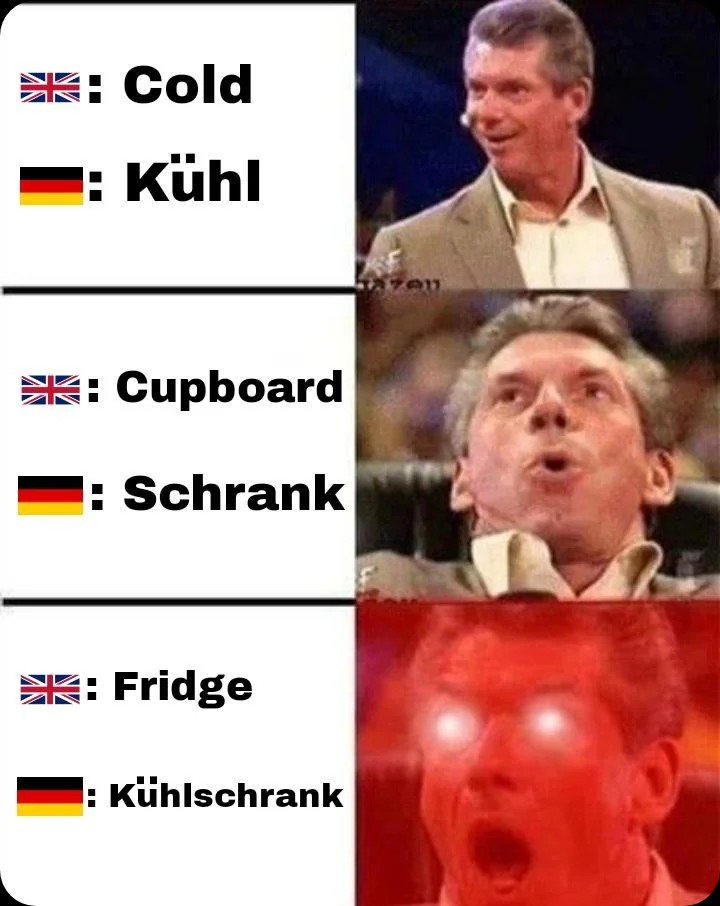 but a cold cupboard is the the technology that predates the refrigerator, so how would you know which one people are talking about in German? (j/k)
