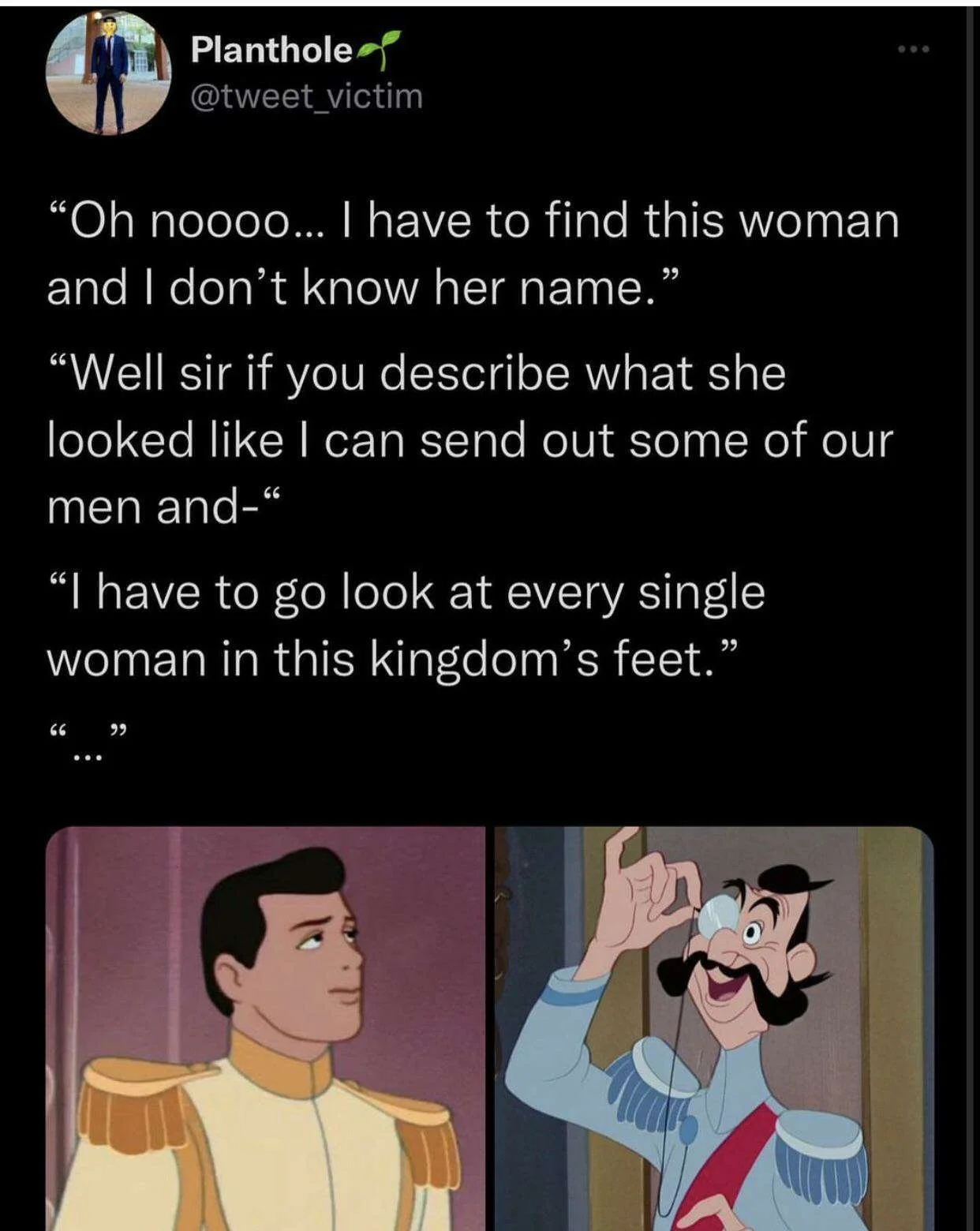 Wait, what’s the implication regarding “fur slipper”? Did Cinderella lose her vagina, and all the women had to try it on…?