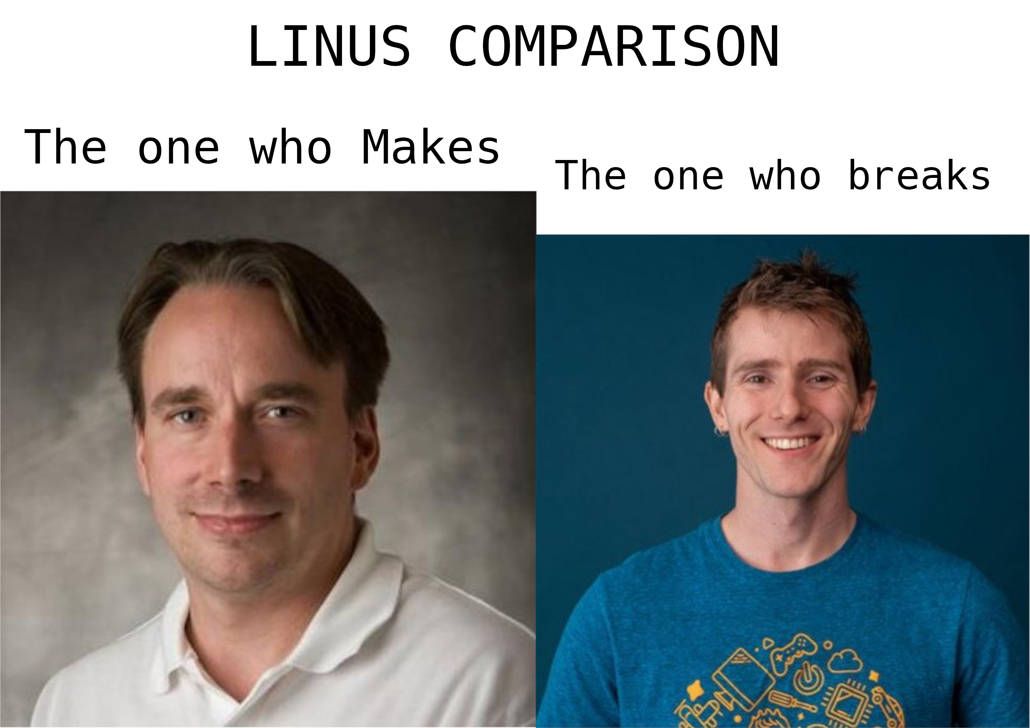 Erik L. Midtsveen 🏴🌈@lemmy.wtf to linuxmemes@lemmy.worldEnglish · 22 days agoLinus Comparisonlemmy.wtfimagemessage-square142fedilinkarrow-up1818arrow-down150