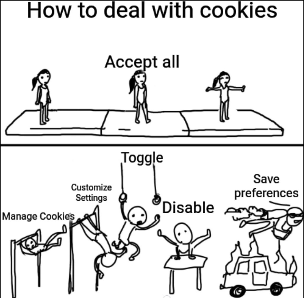 Should have been handled on protocol level. Cookies get priority levels, set browser to only accept required cookies and done. Everyone just wanted to do it the easy way… add a banner and ask the user… or dont even make the banner, call a third party library that does it for you… and has its own tracking code… yay!
