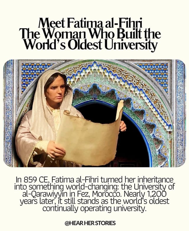 What if the truth can’t be known as Ibn Abi Zar only wrote on this 500 years later and archaeological evidence is not definitive but the story has inspired countless young women in the Islamic world to pursue higher learning?