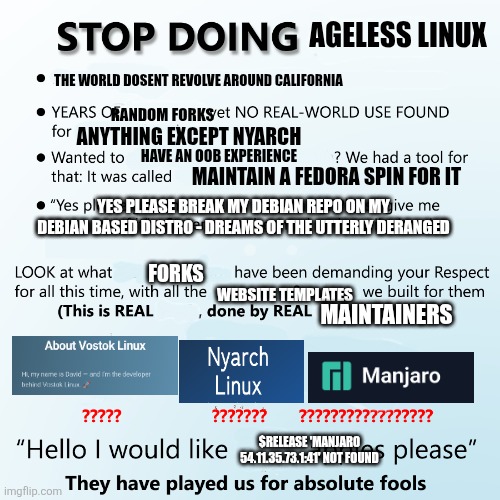 In what way? Please, seriously, tell me. If I change my $release to this, does my distro maintainer suddently stop implementing any age stuff? Because honestly I don’t think this is how FOSS works. If you don’t like it, fork it and maintain it.