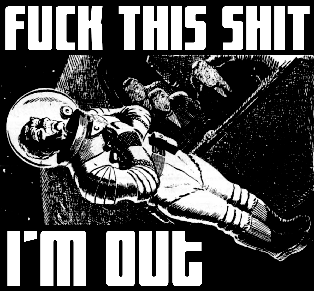 Going to swing an miss on a few. Just trying to make a sci-fi meme a day using golden era sci-fi art and themes. Personal challenge and I’m bored at work.