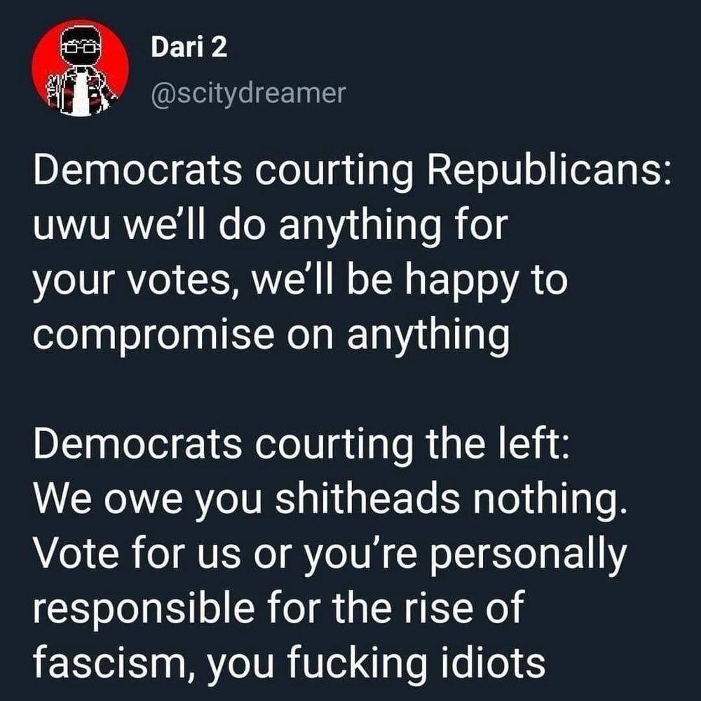 Well the DNC isn’t going to allow leftist ideologies in the party.