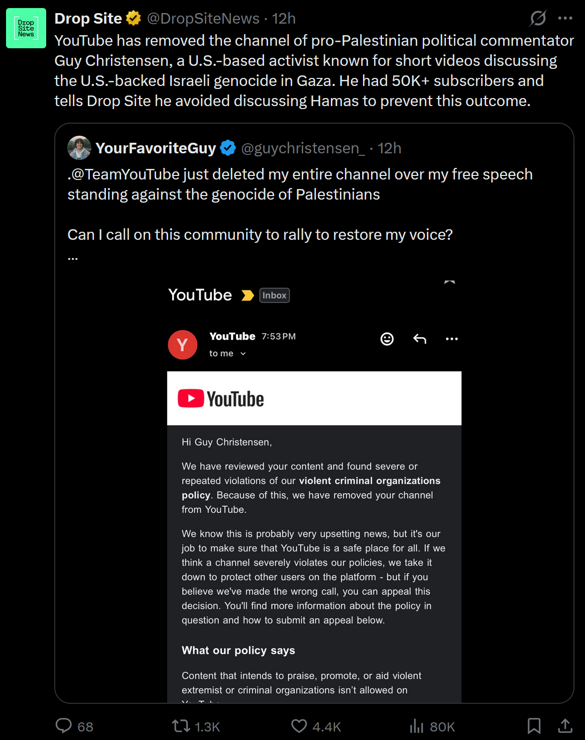 That’s true but most of the hammer is coming down on Palestine content right now. Netanyahu publicly said the goal of the TikTok purchase was to censor for Israel and they’re pulling out all the stops. ICE content isn’t nearly as censored as Palestine content atm