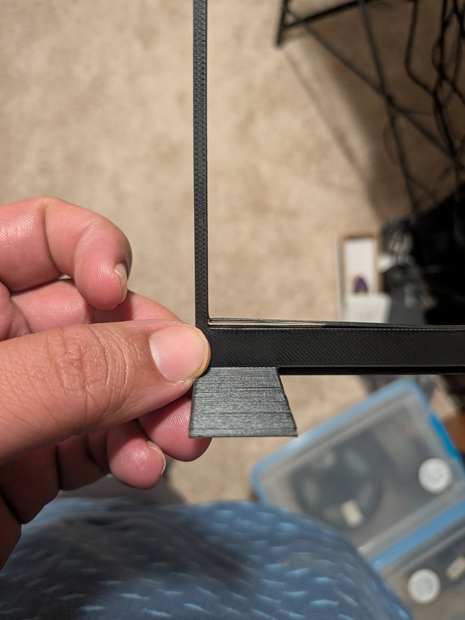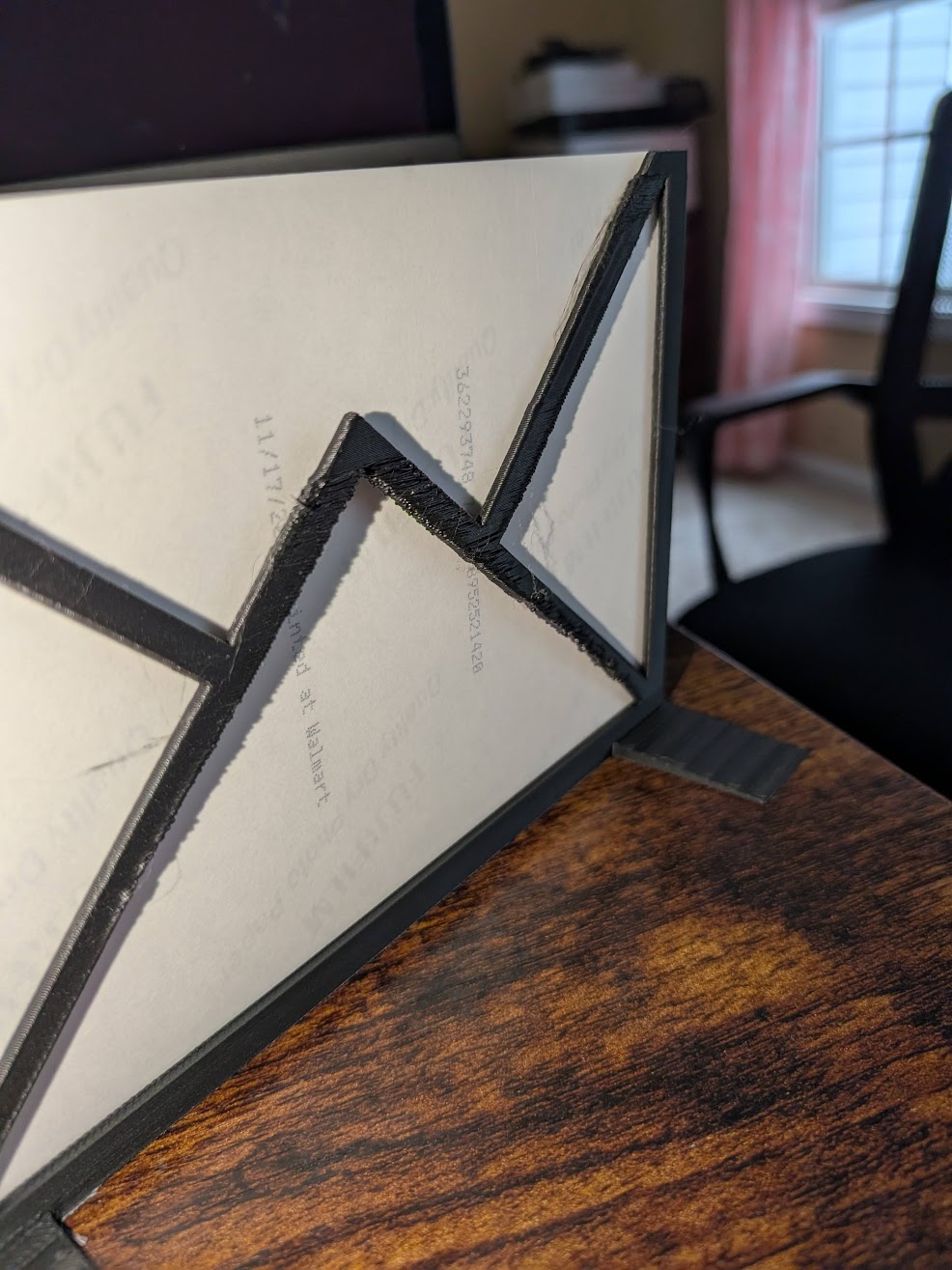 I tried with 50% speed, and even silent option which is even slower. Still happened. May be a hexagonal pattern might work better. I just want to build a simple photo frame that one can print without supports, and one that uses minimal filament.