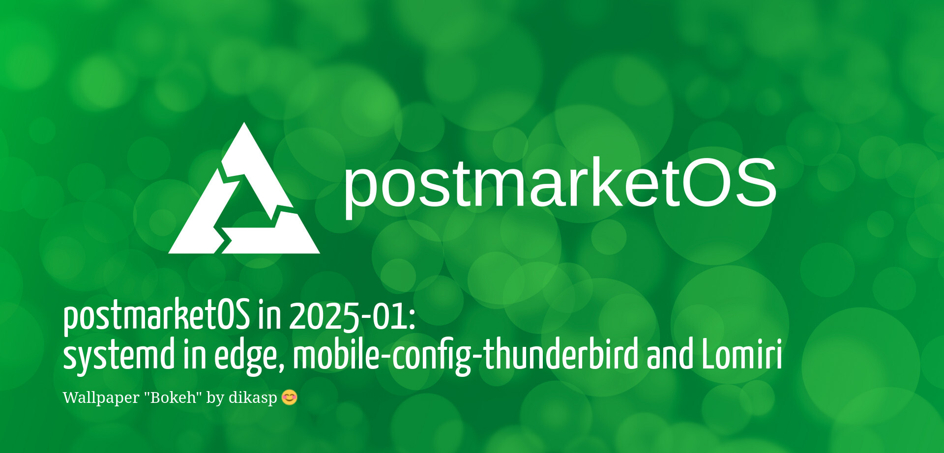 arrow-up164arrow-down1external-linkpostmarketOS in 2025-01: systemd in edge, mobile-config-thunderbird and Lomiriplus-squarepostmarketos.orgollieparanoid@lemmy.ml to Linux@lemmy.mlEnglish · 11 months agomessage-square1fedilink